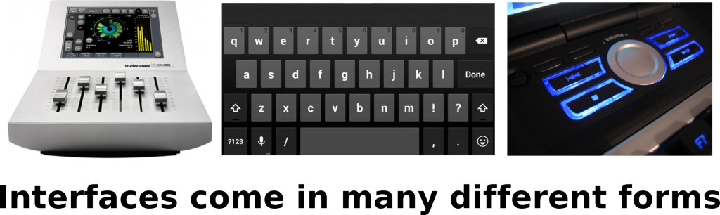 Anything with a button, dial or other sensor is technically an interface. Other interfaces might not even have anything you press or touch- they may be a communication receiver of some sort. Light switches, garage door openers and dishwashers are all examples of systems that have interfaces. Even when you are not pressing buttons on your television it is interfacing with the satellites that provide the channels. Now that you know what an interface is, when you look around you’ll see them all over the place!