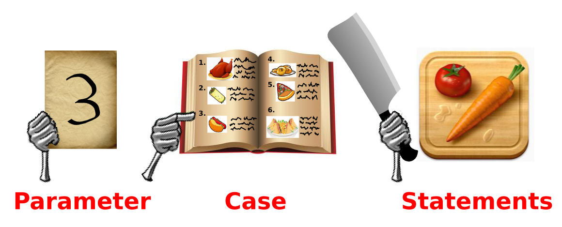 Sure, the recipes are all different. Sometimes there are special instructions that check outside variables- is the hamburger rare or well done? Should the milkshake be extra thick or maybe have chocolate syrup? But that’s just like the code inside of real case statements, they’ll all be at least a little different.
