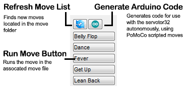 Each of the individual icons inside the main frame control and individual servo. These icons can be dragged around, hidden, disabled, enabled, used to control the servo angle, and used to edit the servo offset.