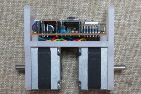 フレームにモーターと制御基板を取り付けた状態。![]() |