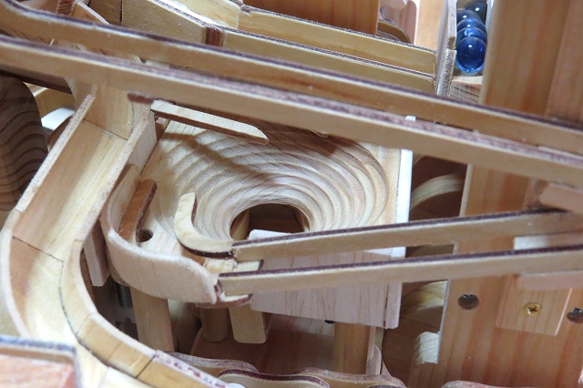 ると玉受けから出て、ヘアピンカーブ・S字カーブの木製レールを通り、ジグザグマシンの出口と合流します。