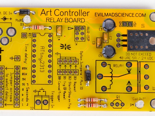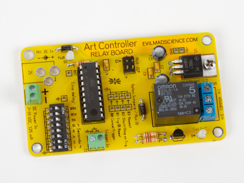(Aside: Technically, the DIP switch is optional. To hardwire the timing, you can run wires from a given timing position (say, the 4-second position) to the opposite ground pin, to permanently configure the timing. If you are building a lot of Art Controller units, each with fixed timing, you'll save a lot of time by running individual wires rather than installing the full DIP switch.)