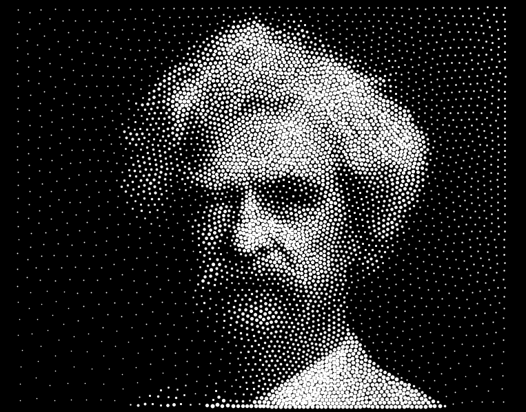 Here now we have a better use of the black background: Mark Twain in 5000 stipples. (Image source.)