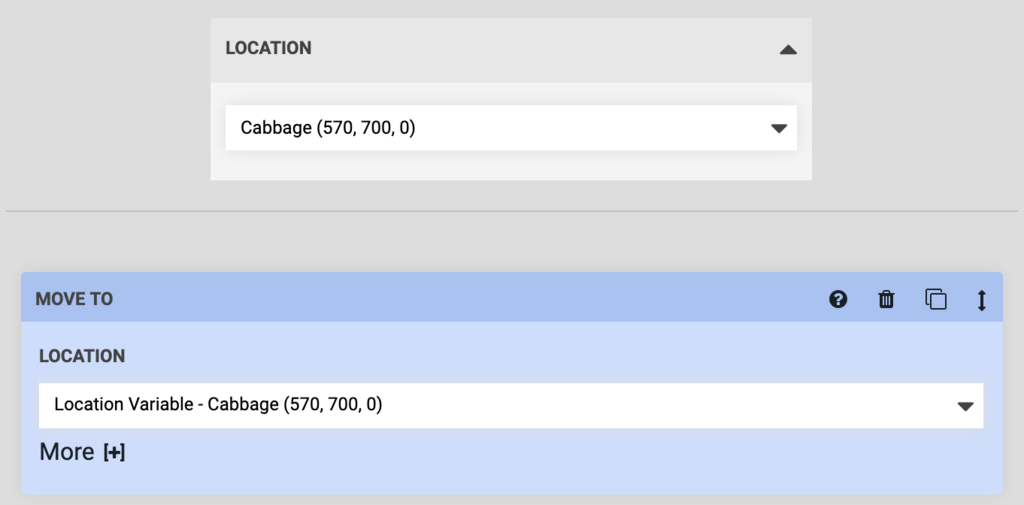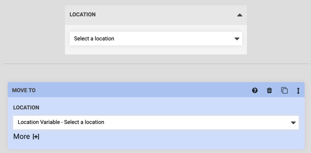 Once you've made your choice, notice that the text in the MOVE TO step's location field has updated with your selection. If you would like to use the variable in additional MOVE TO steps, you can now find the variable in the location dropdowns.
