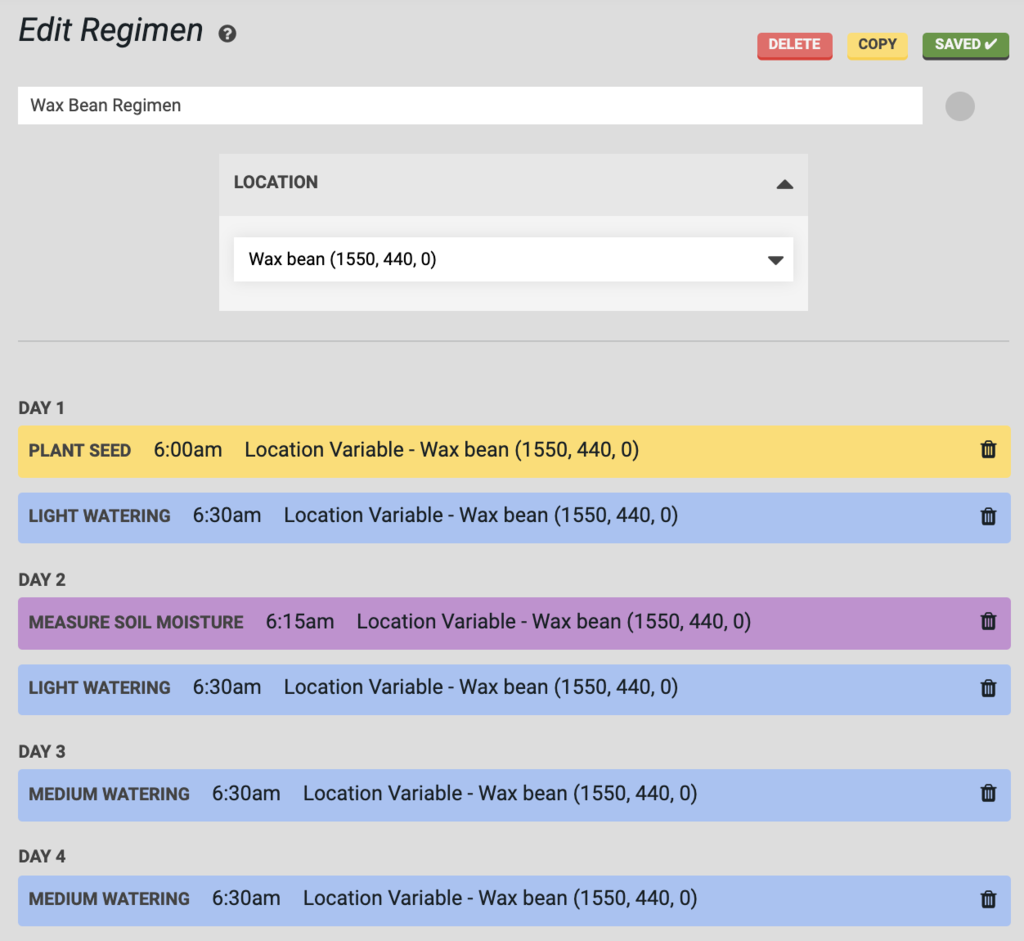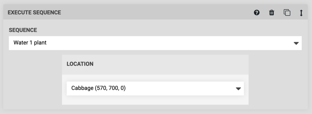 And that is how you use variables! We've taken considerable time to design this system, and we hope you find it intuitive and powerful to use. There are some obvious limitations with this initial release though which will be our top priority to implement as soon as FBOS v8 is released in stable form. First will be support for multiple-location variables such as "All plants" and "All weeds". This will invoke a looping-like functionality where you can run a single watering sequence to take care of, well, all your plants! Next will be support for multiple variables within one sequence/regimen/event. So for example you could pass in both a tool location and a plant location into one sequence. Farther down the road will be new variable types such as time, to be used in the wait command.