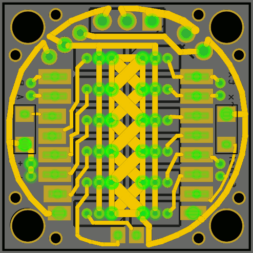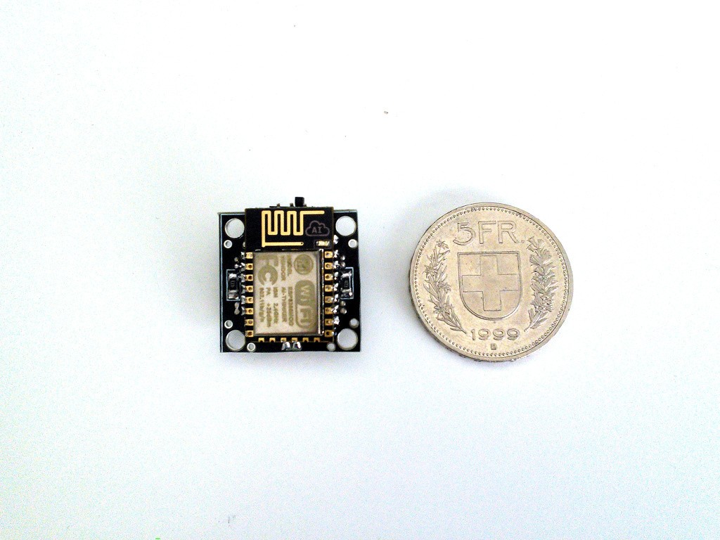 It's one inch by one inch, has room for a dozen of those ultra-micro servos, a voltage regulator, and free analog pin, which could maybe be used for some sensor... If I can't find an ESP-12D, an ESP-12 will also work, sans 2 servos. But I can still build a quadruped like #Katka, a mammalian robot with just eight of the servos.