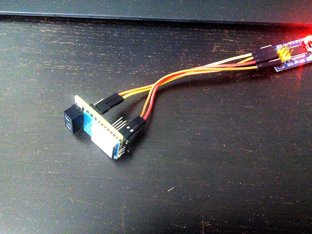 Today I'm continuing the work on resurrecting µBob. I decided to use a Pololu SHARP distance sensor (because it can work with 3V), and using a bit of hot glue I attached the pins to it, so that I can plug it in easily: