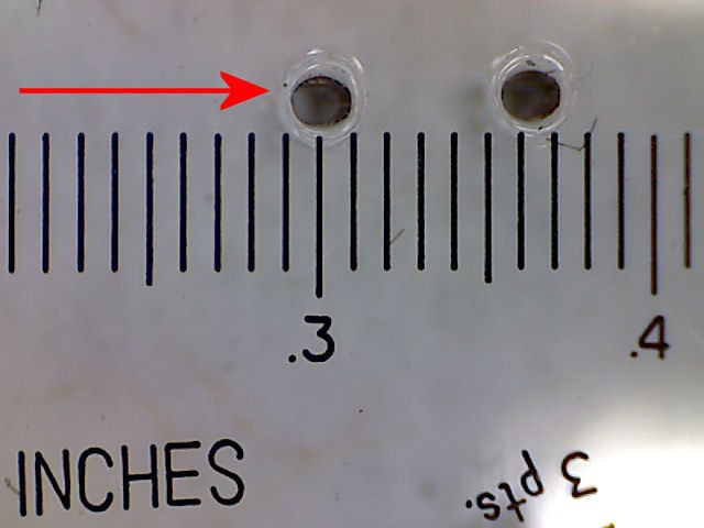 The transparent graticle on my microscope easily shows the spot size of the laser at my hackerspace. I conclude from this that the "kerf" of our laser is about 0.02 inches (20 thou).