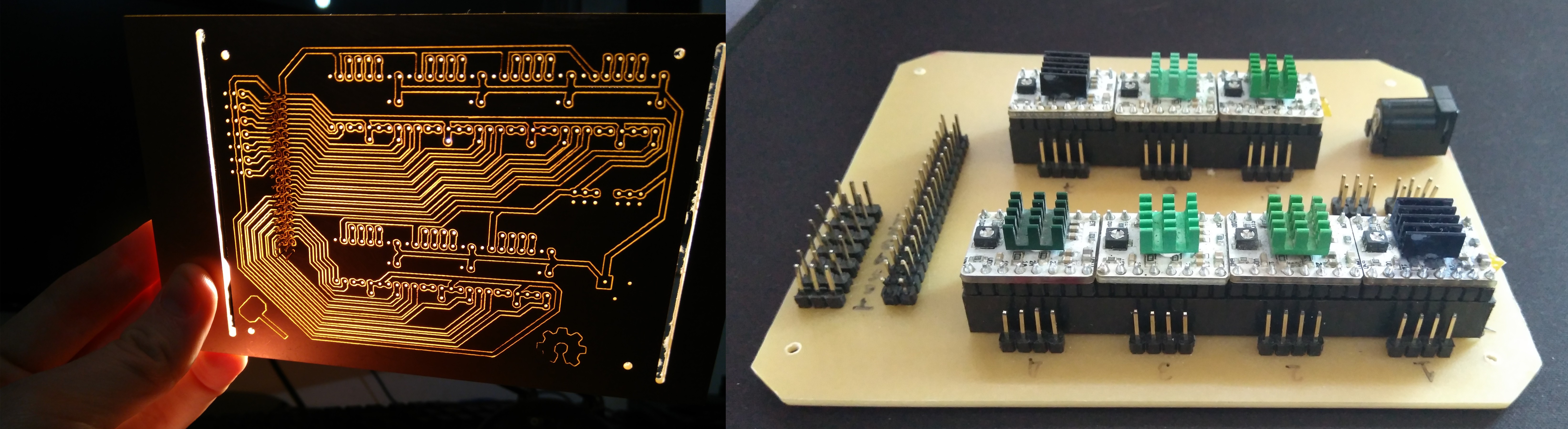 Steppers are controlled by an Arduino Mega using a specially-designed 7-motor driver shield and pololu motor drivers. The system could probably also be driven by a couple of RAMPS boards, and the project logs talk about using a smoothie board to control 5 of the seven motors.