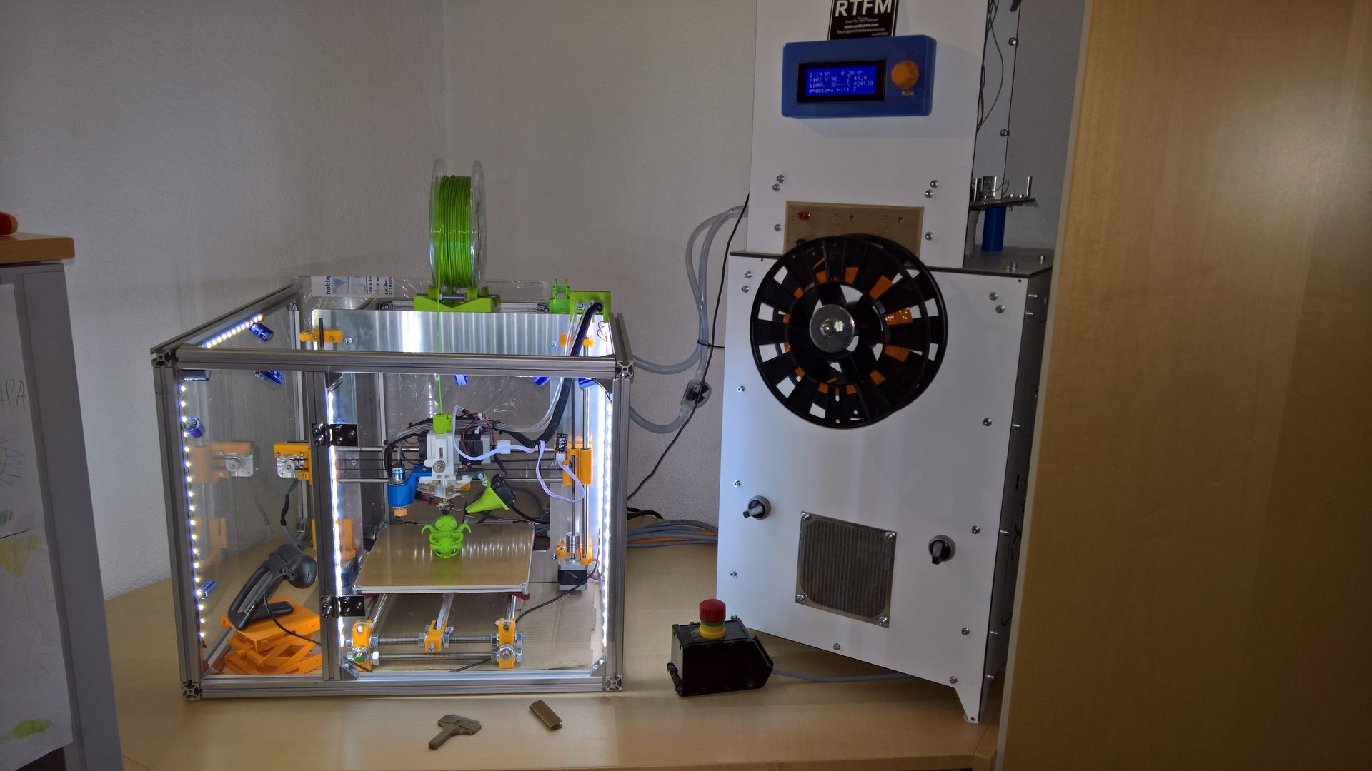 It is a BigBox with raspi 3 and raspi 7” touch, touch ui + autostart and the printer mains is switched by a power strip which is powered by the raspi’s usb power. So when a print is done I can shutdown octopi and the printer. Soon I will try to automate it by plugin depending on hotend cooled down.