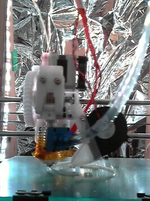 This is my crappy printer. I started one year ago with a cheap entry level printer and was not satisfy with it. So I started to add a few thing to make it better and make higher prints. Yes, the lamp is from Ikea :-D
