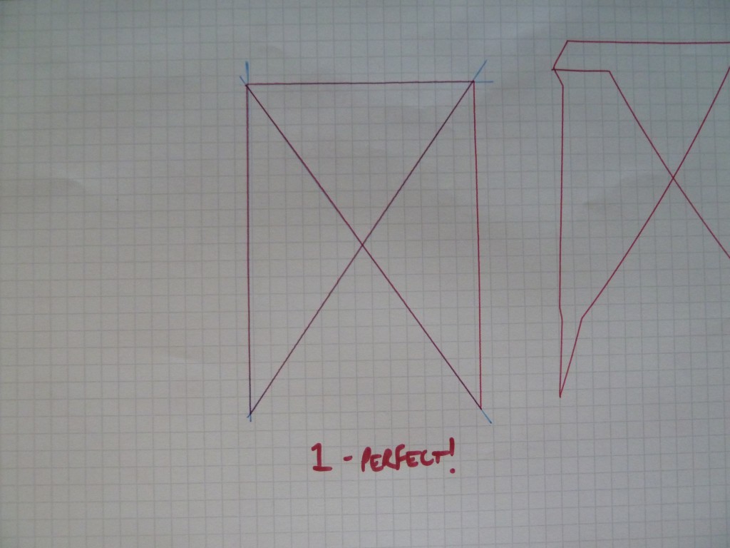 I don’t think it’s to do with the position working-out algorithms (getMachineA(), getMachineB(), getCartesianX(), getCartesianY()) because that would show up as positioning errors in all of the tests. Though my feeling is that the difference seems to be that the longer segments have more space to correct their deviations, whereas the smaller segment can only go one or two steps either way, so can’t do it. But that doesn’t explain why it’s so consistently wayward.
