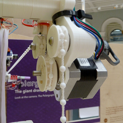 There’s been a bit of ongoing investigation about getting the polargraph firmware running with the new Adafruit Motorshield (v2). I have just got one of these shields recently, so have only just had a chance to work on it tonight.