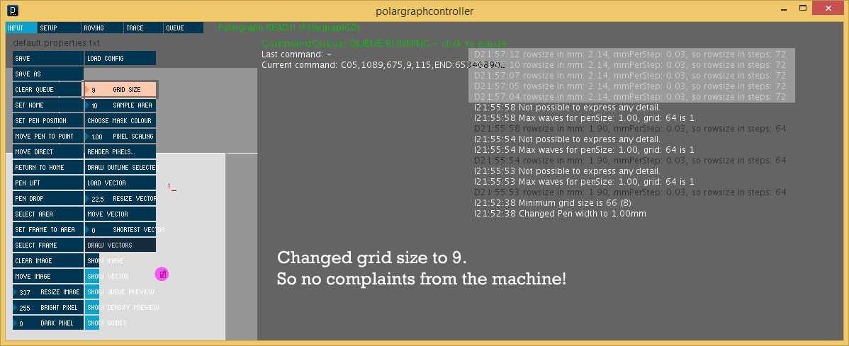 So now, when you change pen size, the machine itself replies suggesting the smallest grid you can usefully work with with this pen: