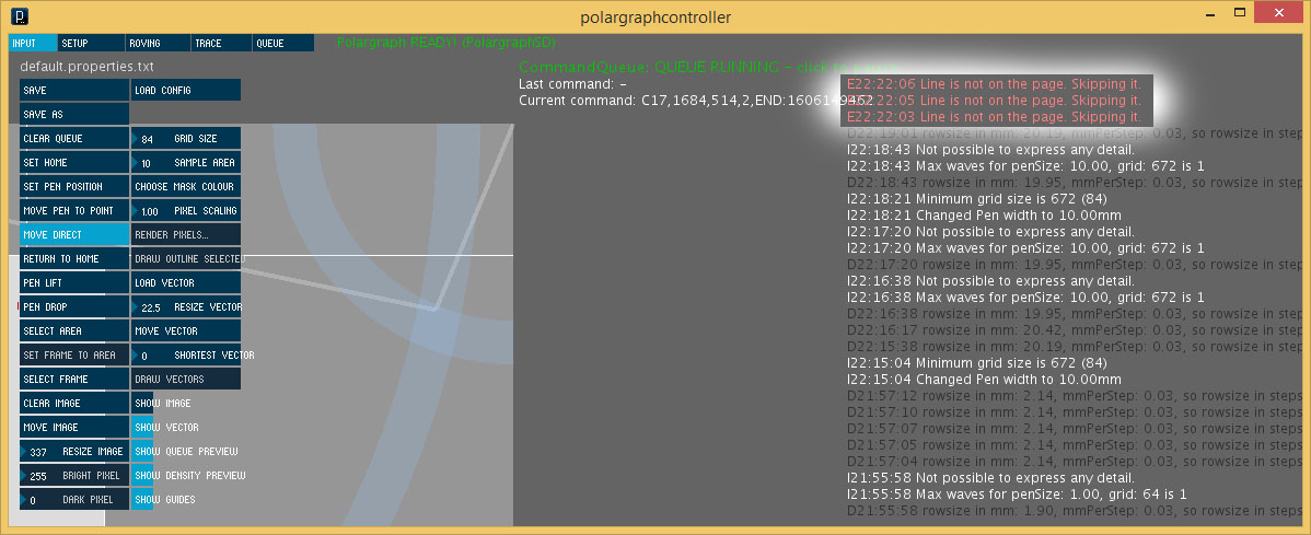 The examples above (vector location and pixel debugging) are now in polargraph_server_polarshield and also polargraph_server_a1 in a limited way. Polargraph_server_a1 is too pushed pushed for space to be able to sacrifice much for this, so it will never be as helpful as wasteful old polarshield can be.