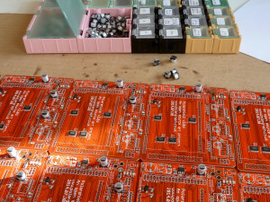 I’ve got all the parts I need in little boxes, and empty out about the right amount of parts, sort through the pile and turn them over and line them up with a pair of tweezers. I used to use tweezers to place them too, but have recently got a cheap vacuum pickup tool that makes it a bit quicker.