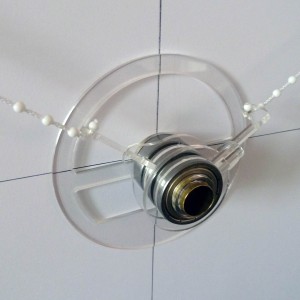 It dangles, hence a gondola. Clip the two lengths of beaded cord into the hooks on the gondola, and hang them over the sprockets.