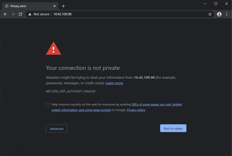Some recent web browser are automatically trying to redirect users from HTTP to HTTPS protocol (for additional security), so even if you are trying to access Slideshow’s web interface through HTTP, the browser might redirect you to HTTPS on the background and as it sees just a self-signed HTTPS certificate, it displays a security warning. You can skip this warning by clicking on the Advanced button and then Proceed or Accept the Risk and Continue button. This will allow you to use Slideshow’s web interface without any restrictions.