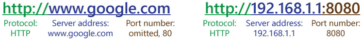 For common network protocols, there are usually default port numbers, which has been standardized. For example for HTTP protocol, default port number is 80, for HTTPS is 443 and for FTP is 21. So if you type address http://www.google.com into your browser, it automatically checks that you omitted network port, so your browser will access server www.google.com on port number 80. If you type address http://192.168.1.1:8080, browser finds that you entered port 8080 and will access server 192.168.1.1 on port 8080.