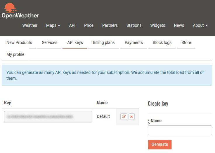 | Where to get the API key | Not required | https://home.openweathermap.org/api_keys – Generate new key | https://developer.here.com/projects – create new project and generate key in the REST section | Not required |