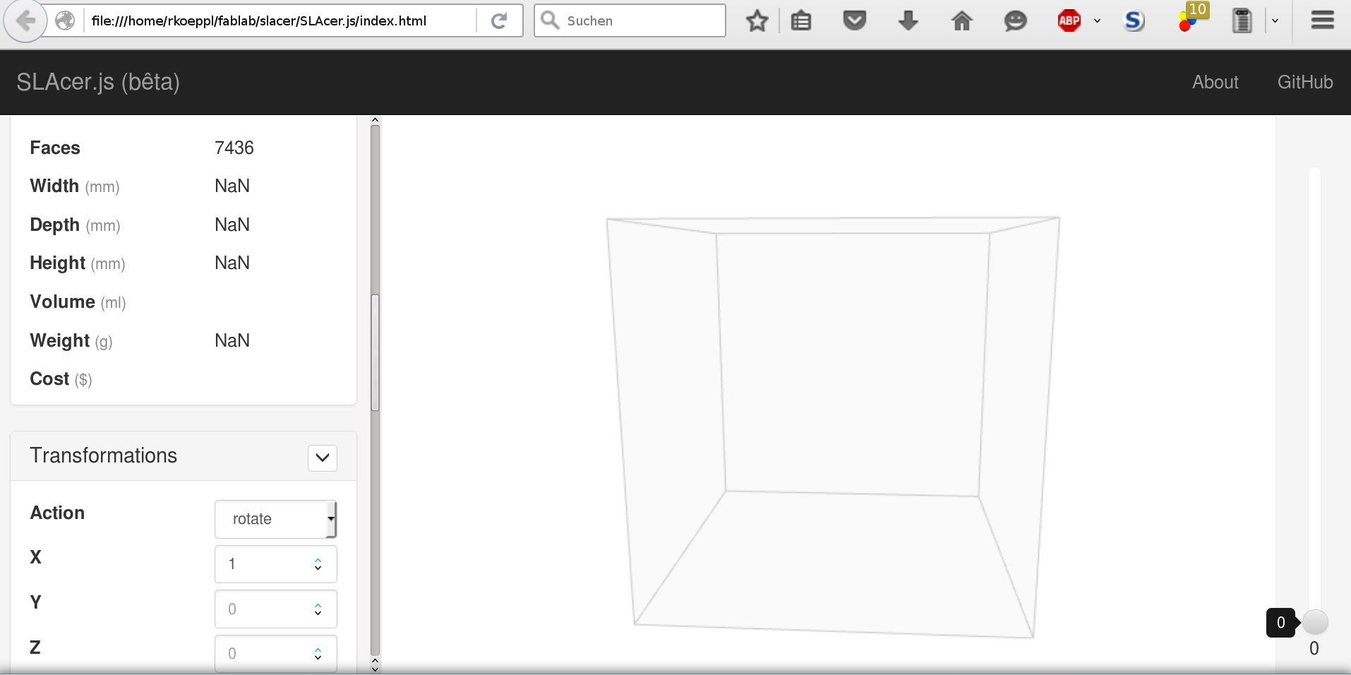 After importing an STL if you try to rotate it using the transformations menu the part vanishes. the number of faces is still displayed in the mesh section, but dimensions are shown asn follows: