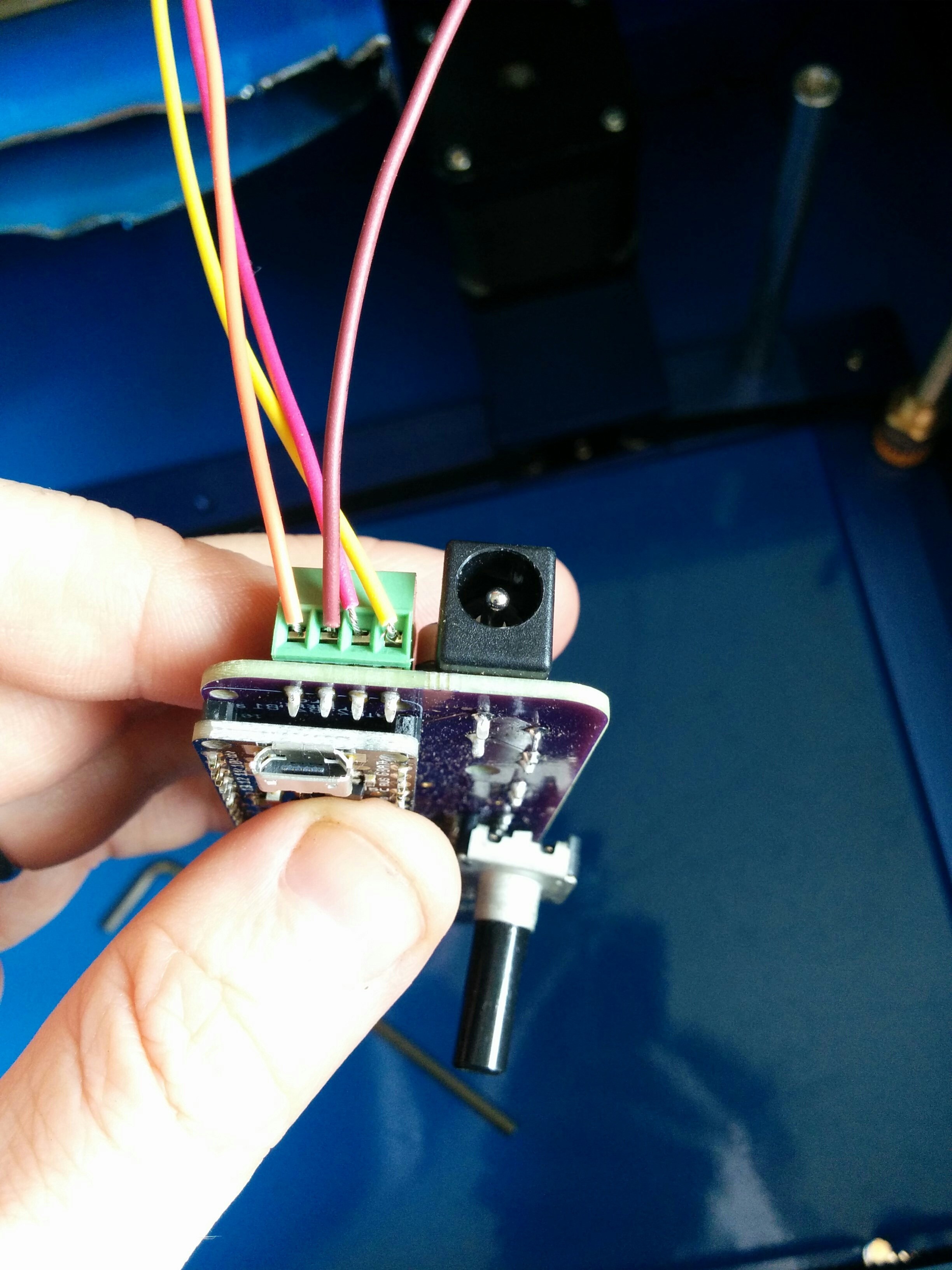 Finally the 4-pole terminal blocks arrived from digikey and I was able to complete the first version of the project. Here's a photo of the installed terminal blocks.