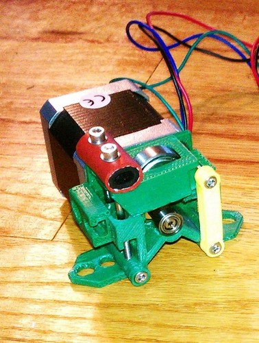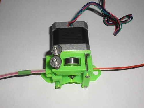 Airtripper's direct drive bowden extruder with MK7 drive gear ![]() http://www.thingiverse.com/thing:22426 http://airtripper.com/ http://airtripper.com/1071/airtrippers-bowden-extruder-v3-updated-design/ http://www.thingiverse.com/thing:35404 http://www.3distributed.com/collections/printed-parts/products/airtrippers-bowden-extruder-v3 http://airtripper.com/367/3d-printer-surgery-4-extruder-upgrade-part-3/ Apparently the rubber pinch roller of this extuder seems to perform good. ![]() http://www.thingiverse.com/derivative:44711 ![]() http://www.thingiverse.com/derivative:31924 ![]() http://www.thingiverse.com/derivative:35672 |