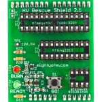 ![]() The HV Rescue Shield 2 is a high voltage parallel mode fuse programmer for Atmel AVR microcontrollers. It currently supports a wide variety of AVR chips, including the 28-pin ATmega48/88/168/328 series, the 20-pin ATtiny2313, and many 8-pin ATtiny devices (such as the ATtiny25/45/85 and ATtiny13A). A list of supported devices is in progress, but the Rescue Shield supports many more devices than those listed on the wiki.
