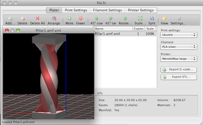 3D preview, automatic STL repair, rewritten support material, distinct options for each object in a print, processing speed, reduced memory... and much more.