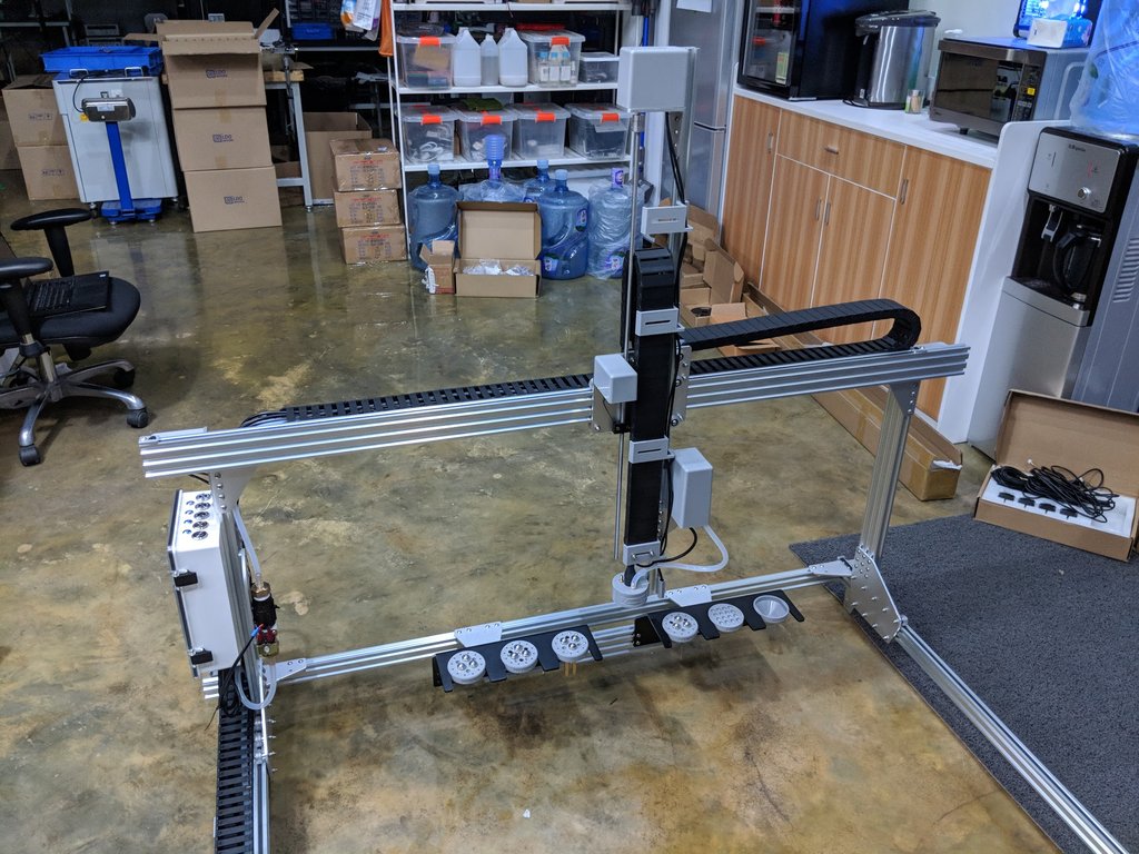We’re in the final stretches of our largest manufacturing run yet where we’re making 300 Genesis v1.4 kits and 200 Genesis XL kits! I visited our manufacturing partners a week and a half ago for quality assurance checks and everything is coming together quite nicely. Below is a photo of a FarmBot we built with almost all of the final production parts: