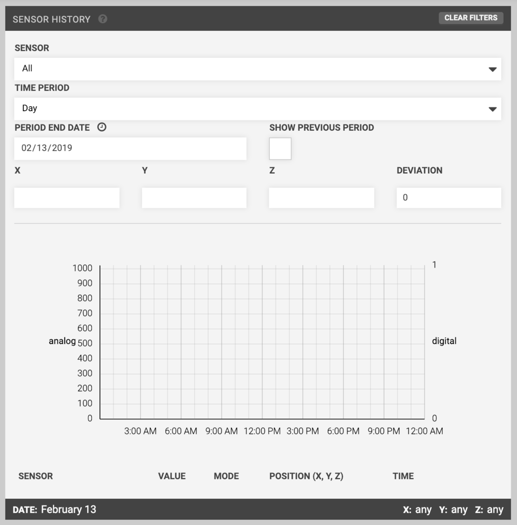 FarmBot OS will now create a sensor reading and attempt to upload it to the web app whenever it reads a pin that has been registered as a sensor. A new Sensor History widget on the Controls page can be used to view and filter your sensor readings based on sensor, time period, and location.