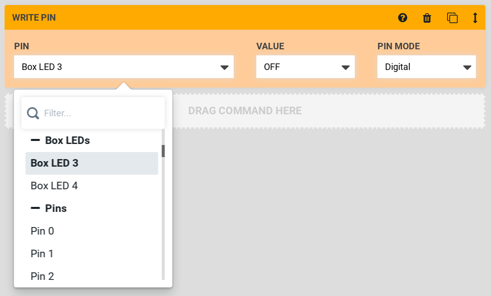 The customizable LEDs can be controlled via the Write Pin Sequence step, which allows you to turn them on and off at specific points while your sequences are executing. This flexibility allows them to be used for many purposes, such as indicating that your sequence has run recently or, along with “speak” logs, providing a visual and audio indication that your sequence is about to execute.