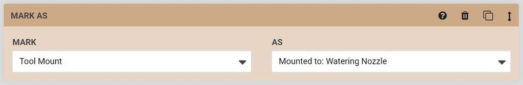 Another example is you can mark the tool mount as mounted to the watering nozzle at the end of your sequence to mount the watering nozzle.
