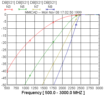 n=3,5,7,9 fc=2500MHz Zo=50Ω