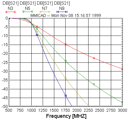 n=3,5,7,9 fc=1000MHz Zo=50Ω